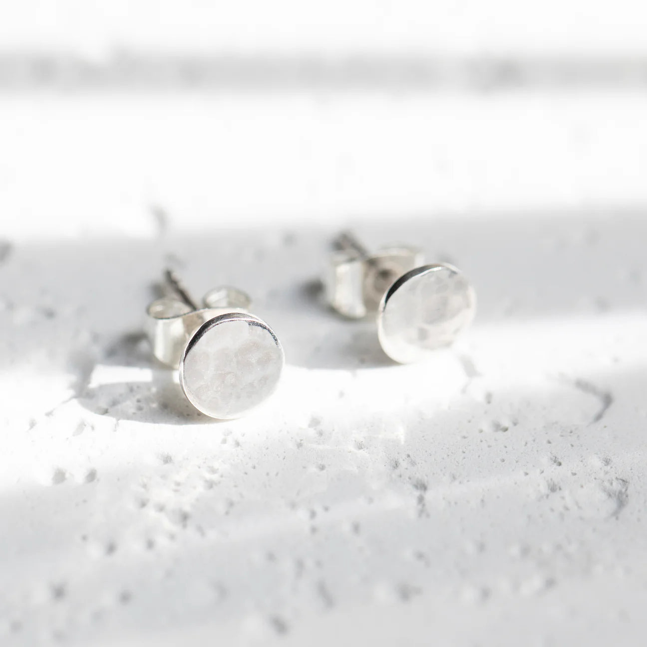 Beautifully minimal, these solid hand-hammered round studs are the essential earrings for life on the beach. Part of the Agonda Collection, the textured design comes from the nature-carved sands of Agonda beach, Goa.