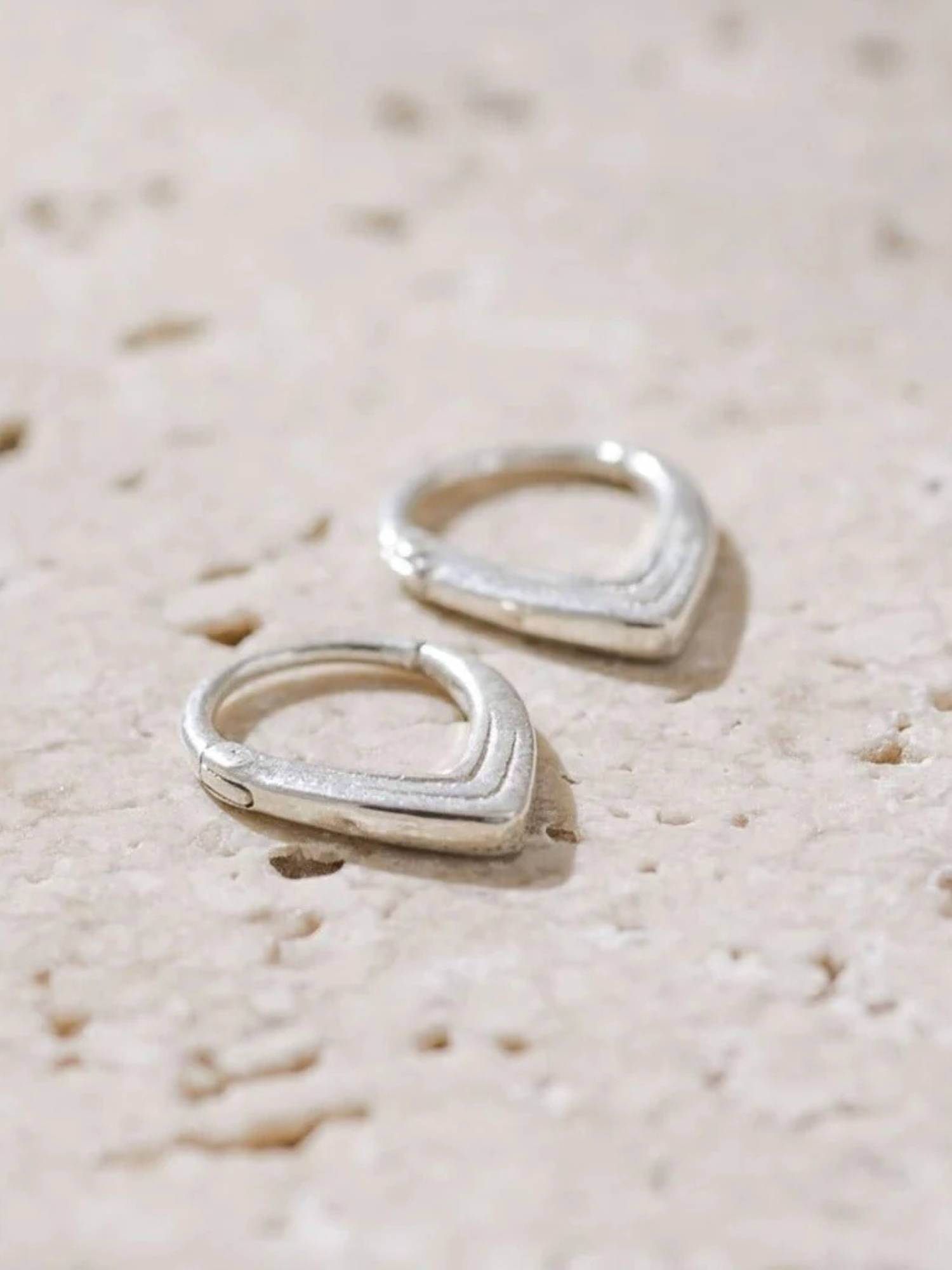 Uniquely shaped into a point and carefully designed by hand with textured ridges, these silver v point huggies are the ideal choice for those that love minimal yet quirky jewellery.