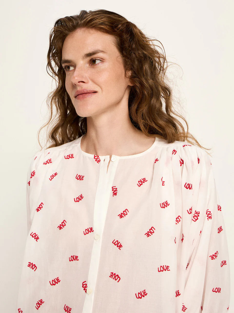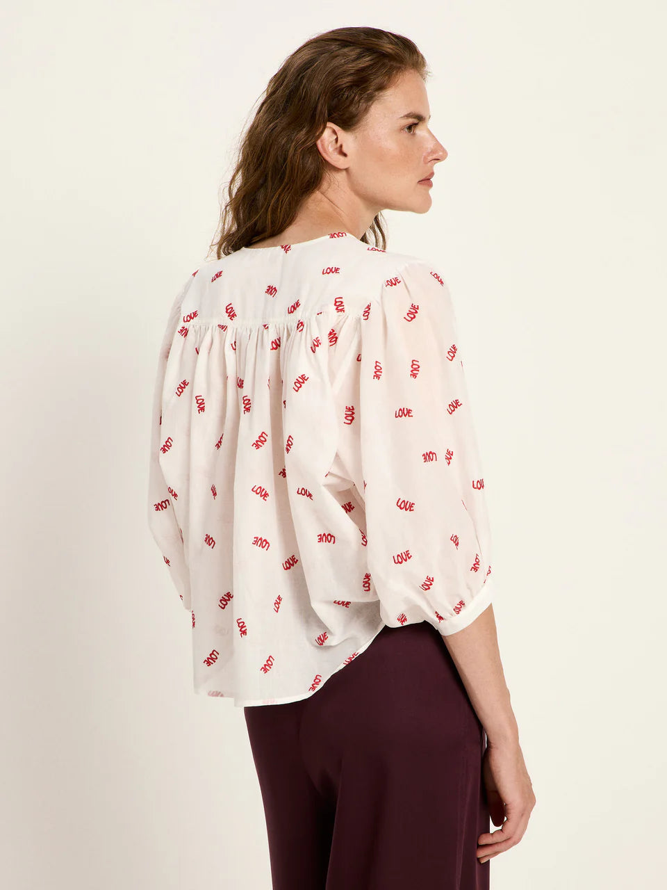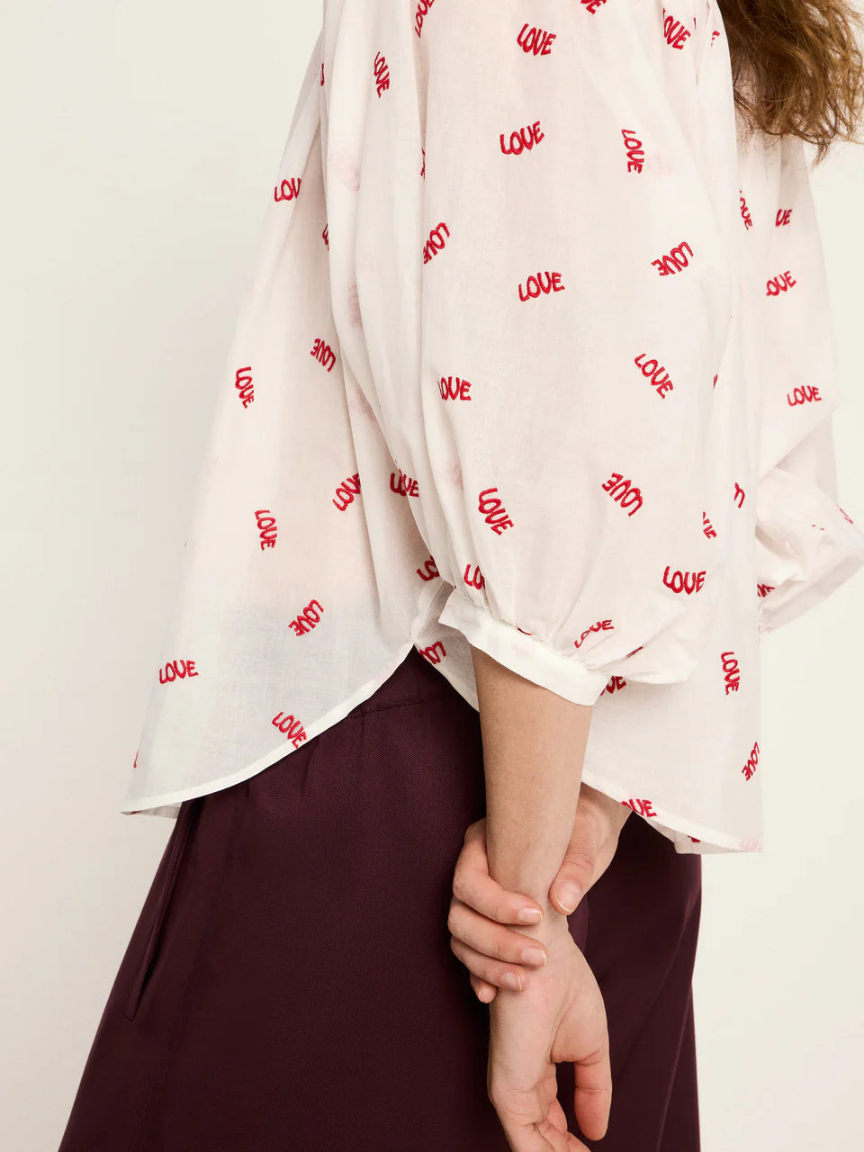 Airy, playful, and made from pure organic cotton: This blouse with ruffle details and an all-over print brings lightness and charm to everyday wear. The delicate fabric feels pleasantly soft against the skin. Fine gathers on the shoulders and back create a feminine silhouette, while the round neckline and shortened sleeves with elastic cuffs create a modern frame – ideal for sophisticated looks with a special accent.
