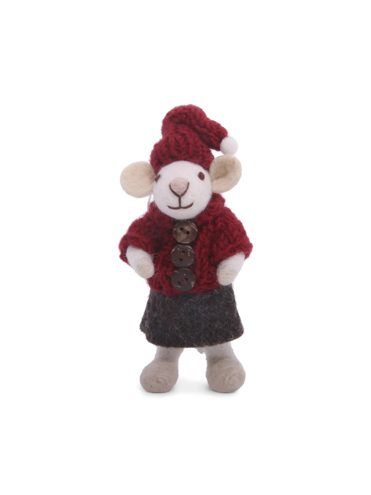 Small White Girly Mouse with Hat, Jacket and Skirt