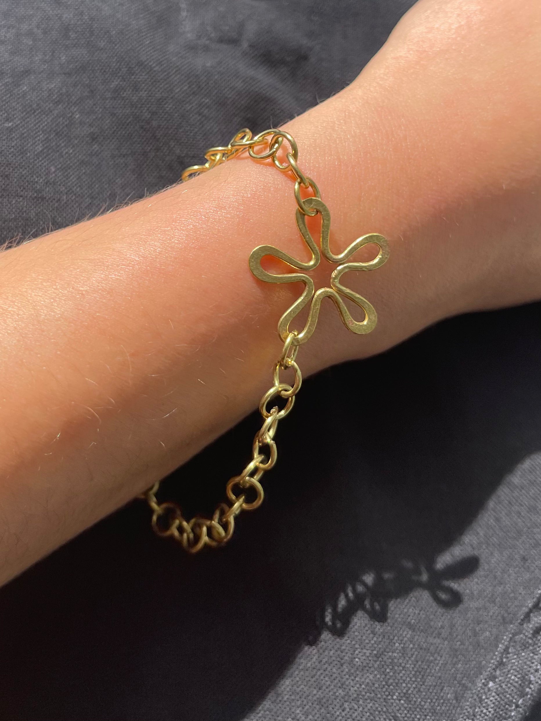 This brass, flower bracelet is both lightweight and durable - designed for effortless wear while adding a refined touch to any outfit.
