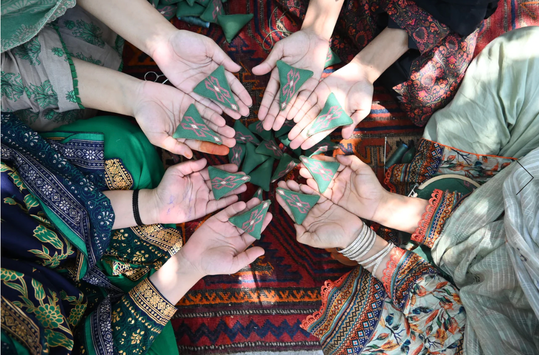 Afghan artisans are skilled in a range of embroidery techniques, such as Kandahari and Tarshumar, that they bring with them from home. "Traditionally Afghan mothers make sure their daughters learn embroidering from a young age. It is part of their training while growing up. Girls make their own dowries by embroidering clothing, wall art, pillows, runners, caps etc. These pieces they take to their new homes after they get married." - Tahira, Founder of Artisan Links