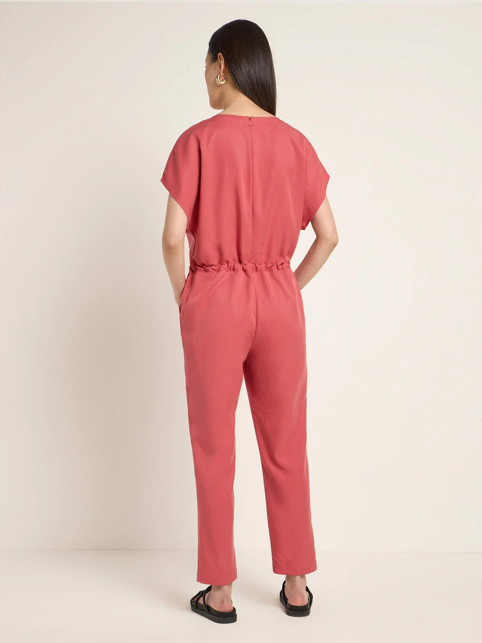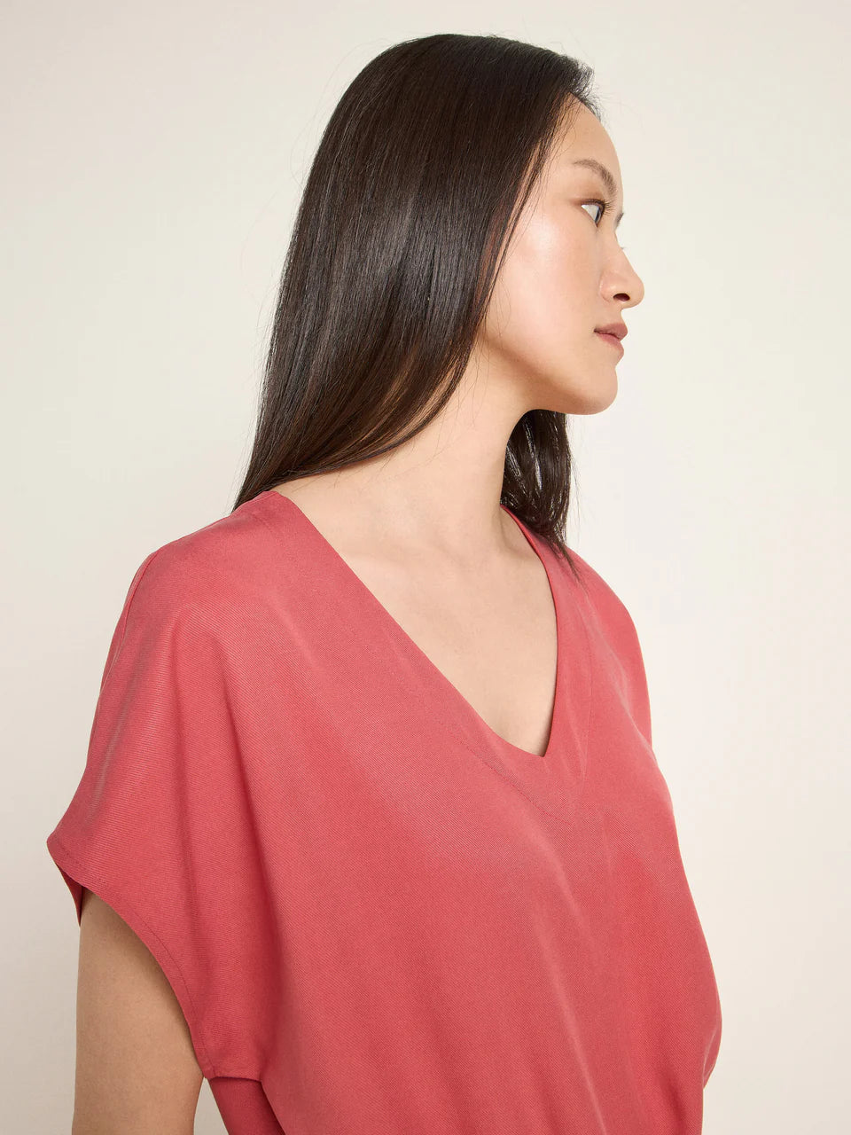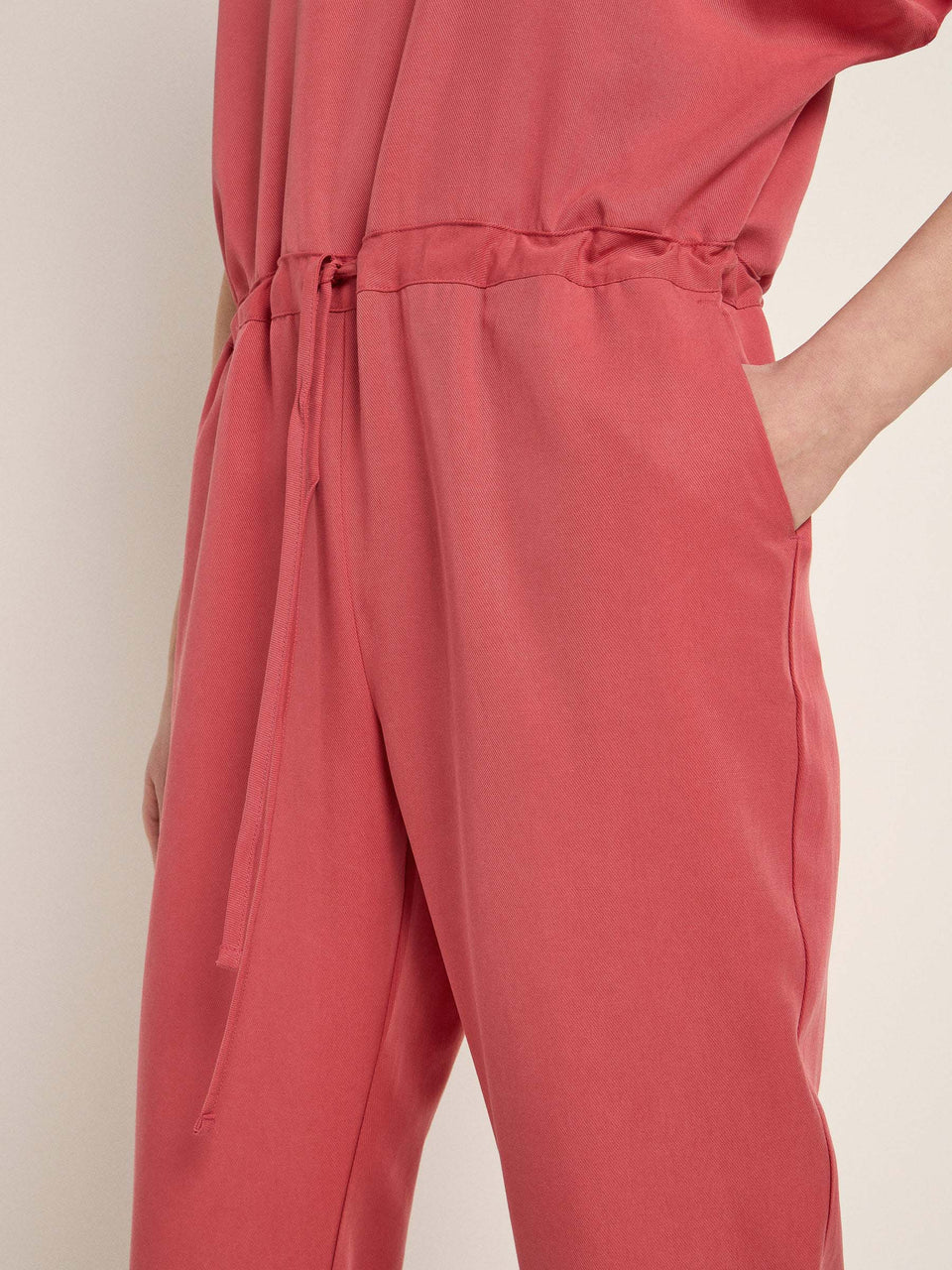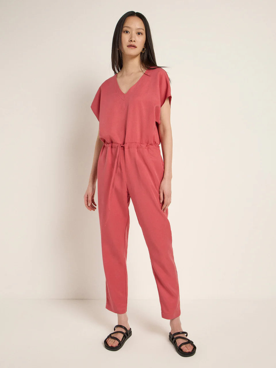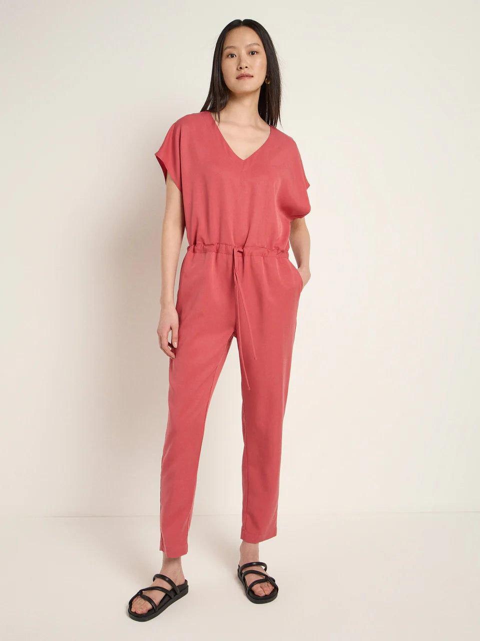 The soft, flowing fabric ensures a comfortable fit, while the V-neck and drawstring waist accentuate a feminine silhouette. The slightly tapered leg completes the look and makes it a versatile favourite.