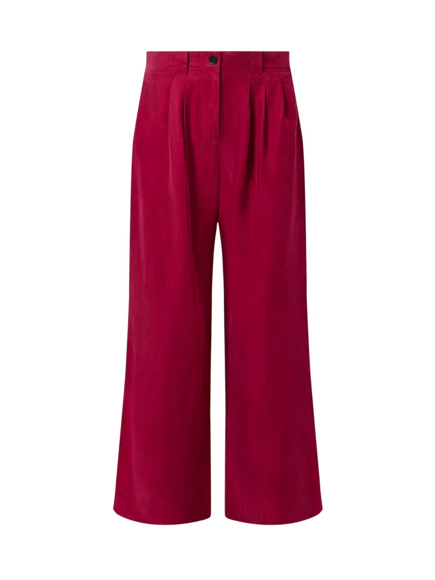 Komodo's LOLA Cupro Trousers offer effortless style with their flattering mid to high-rise waistband paired with a wide leg silhouette for a relaxed look, perfect for any occasion.