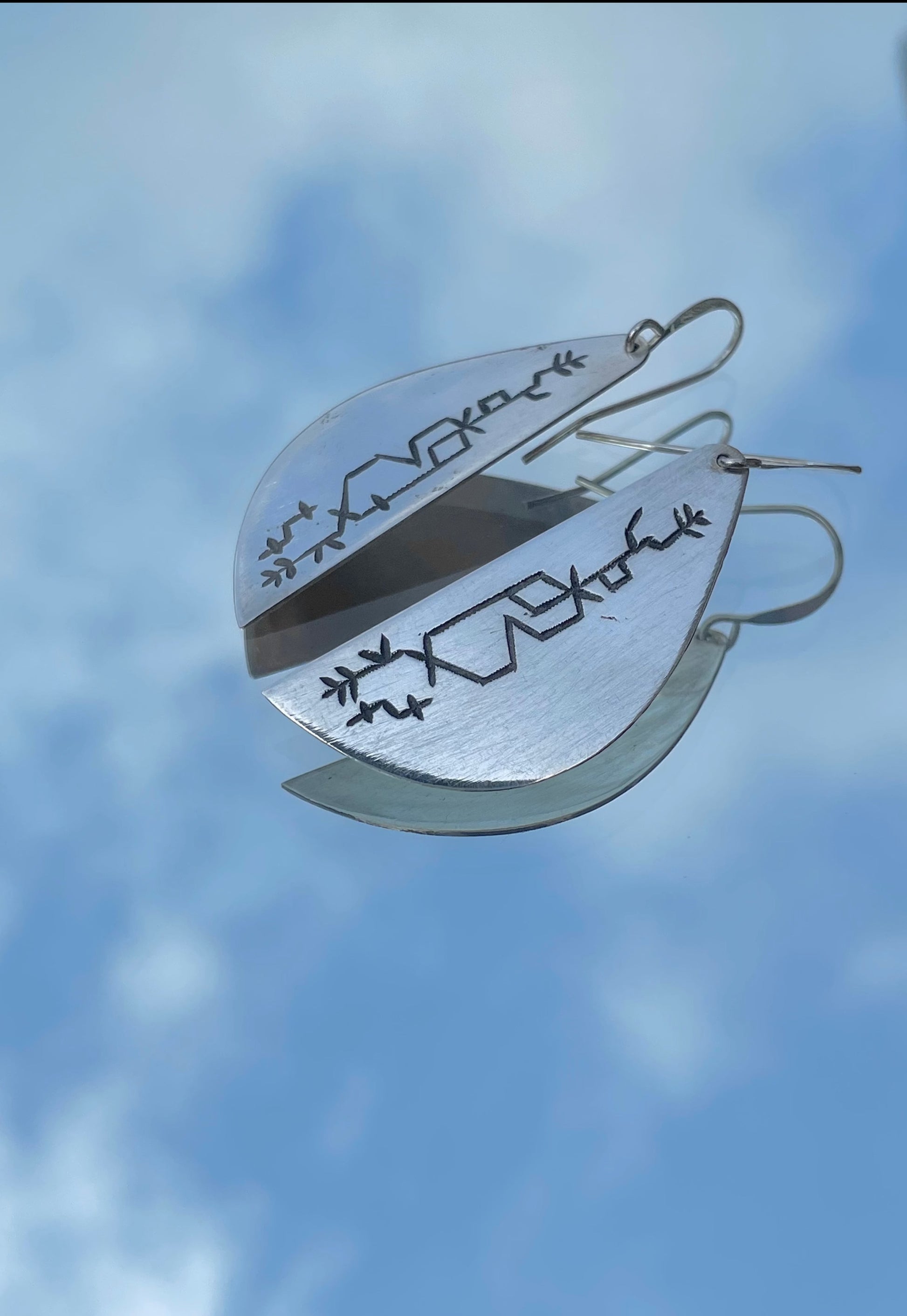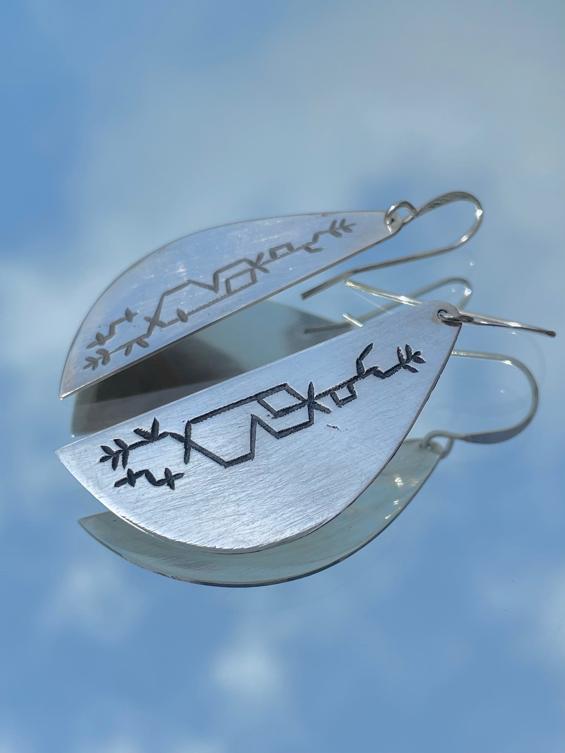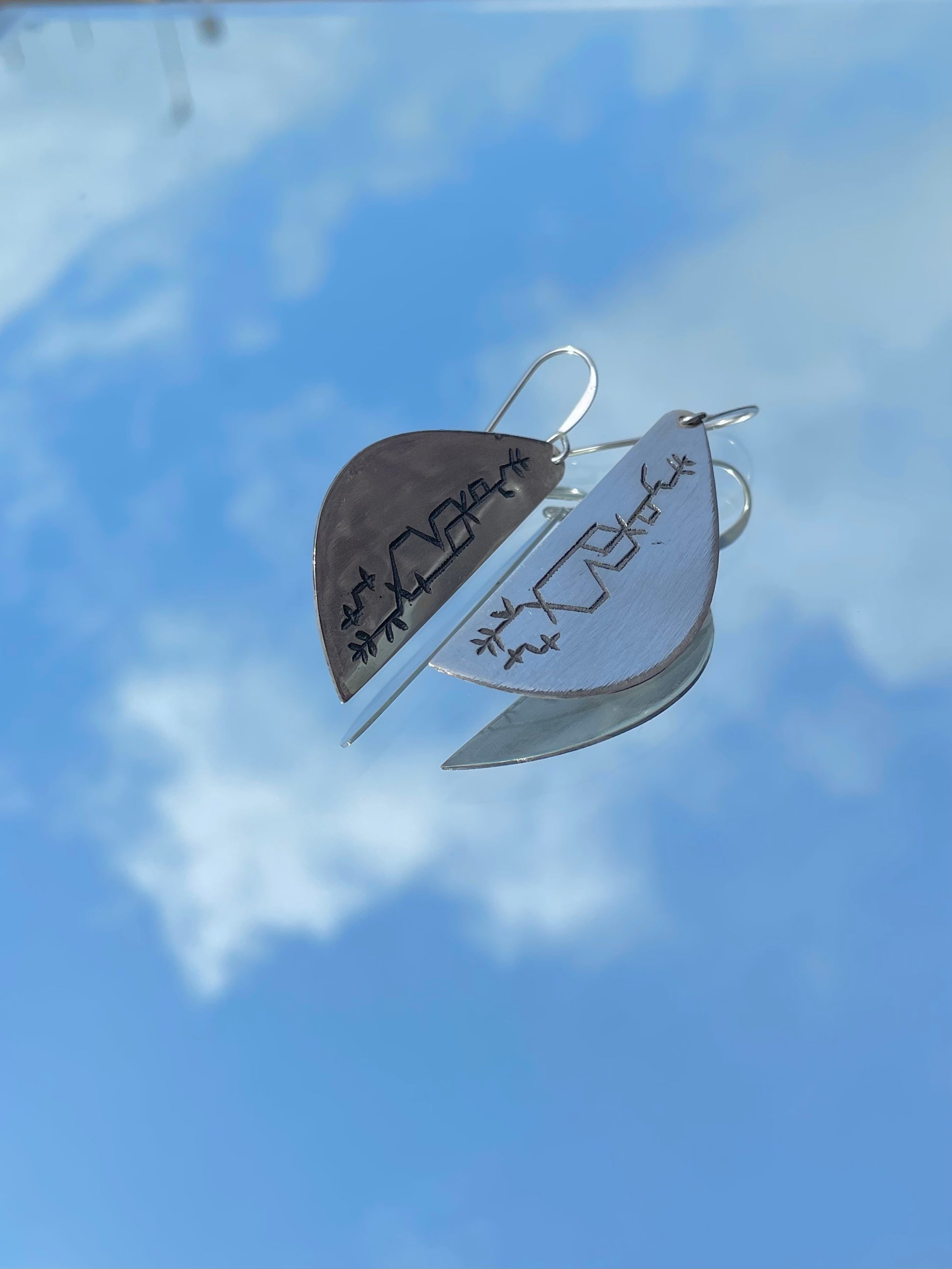 These elegant and intricate earrings are created using the age-old Tuareg technique of working with metals. It fuses traditional silver shape with a beautiful and contemporary draw designed by a refugee Tuareg artisan representing a long, beautiful and passionate journey.