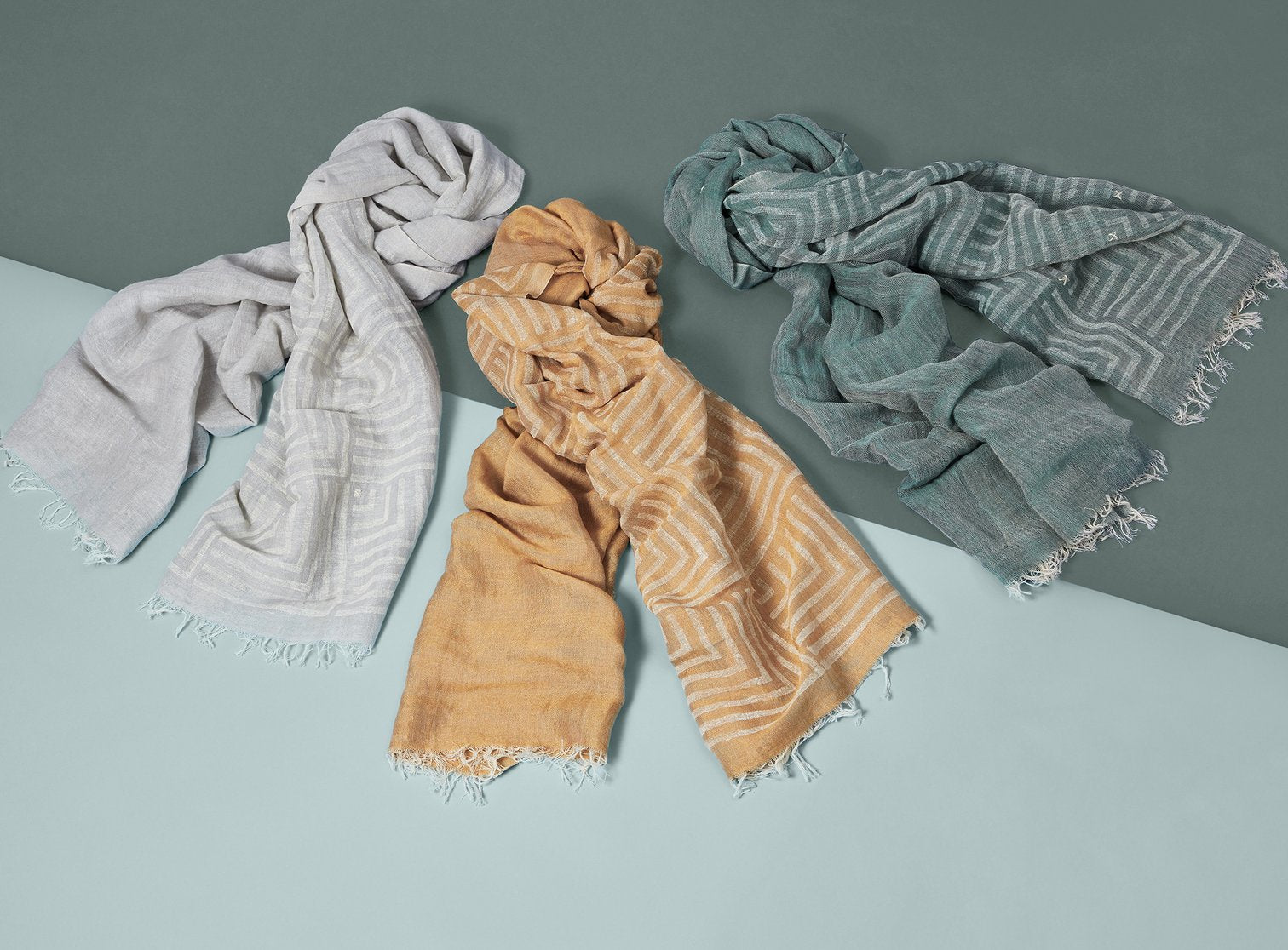 A multicultural group of refugee and Egyptian women work together in Cairo to create these authentic scarves using local materials. Each handmade scarf reflects a personal artisan story and skill.