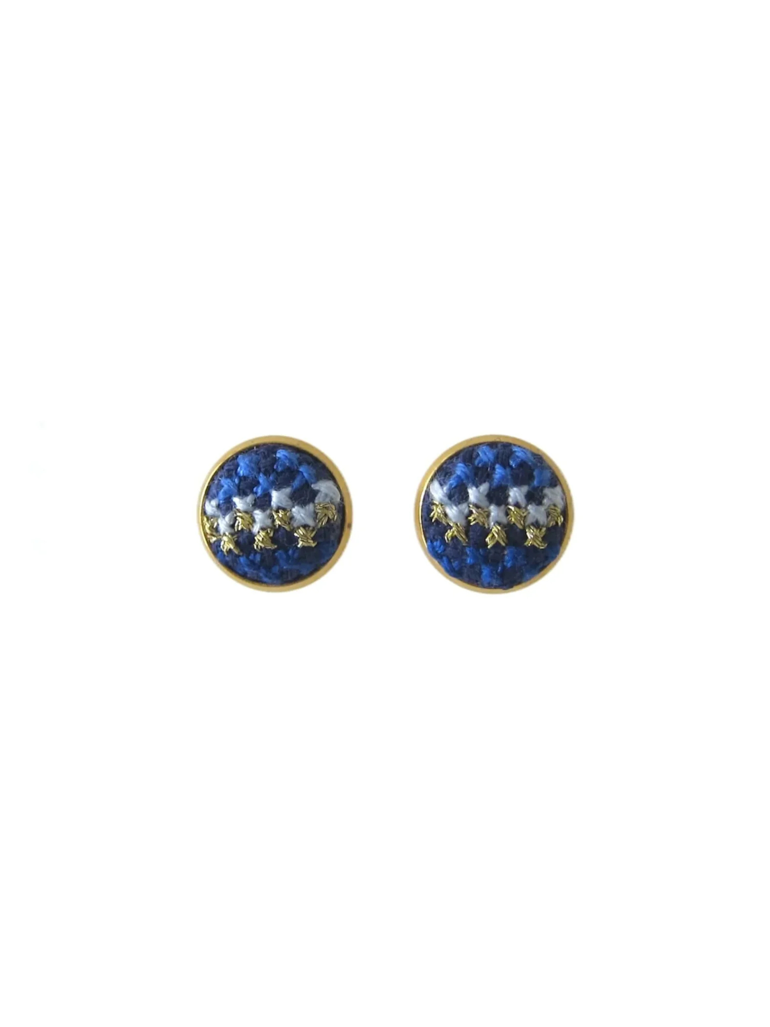 These embroidered earstuds highlight the varied heritage and unique cultural narratives of refugee artisans. The patterns are inspired by landscapes of Myanmar and Middle Eastern tile designs.