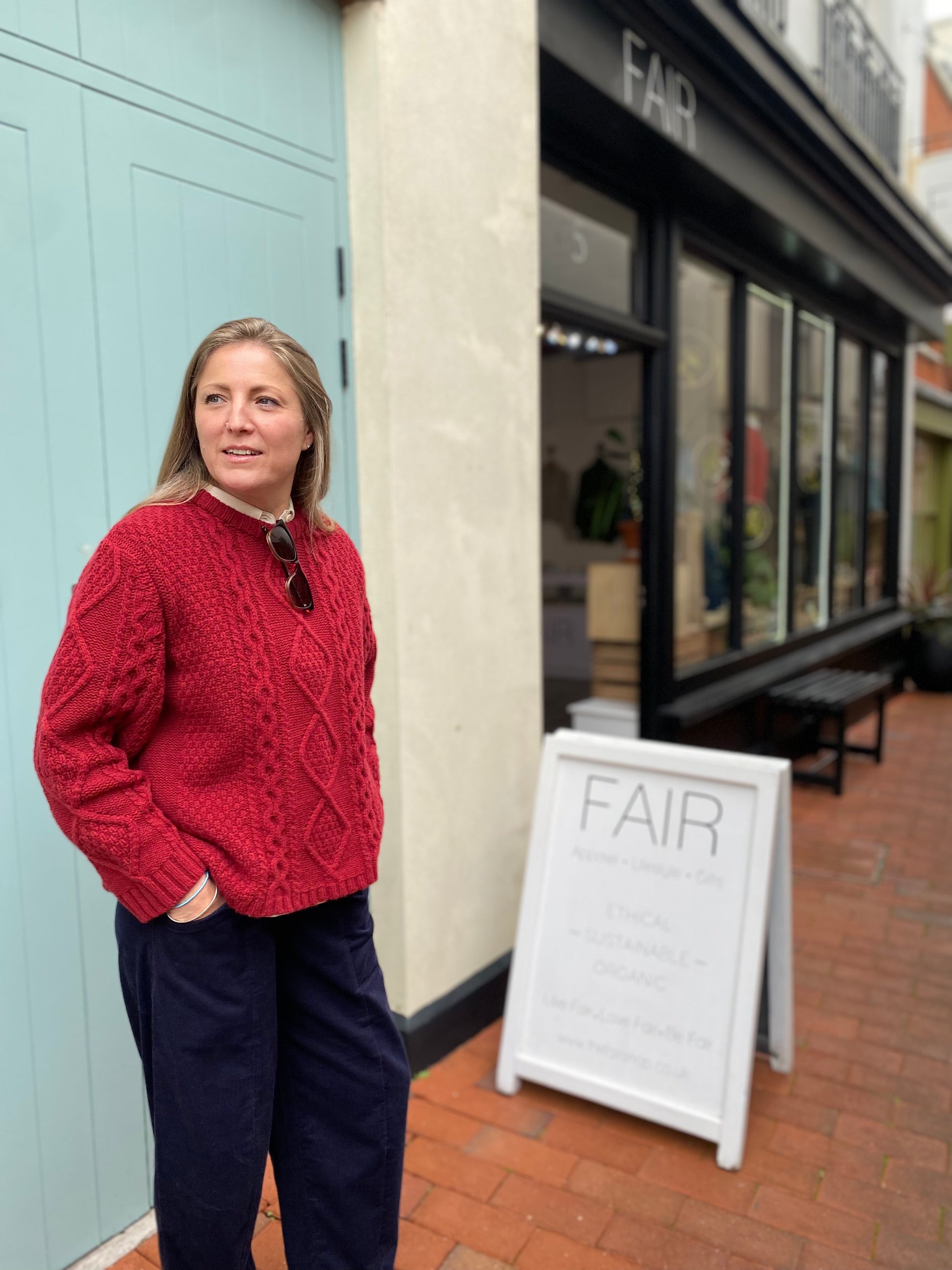 The yarn is spun at a mill in Yorkshire that is dedicated to producing high-quality yarn in bold, unique colours. This wool is loved for its softness, extra warmth, and durability; it also holds its shape well. This jumper is a beautiful magma colour.
