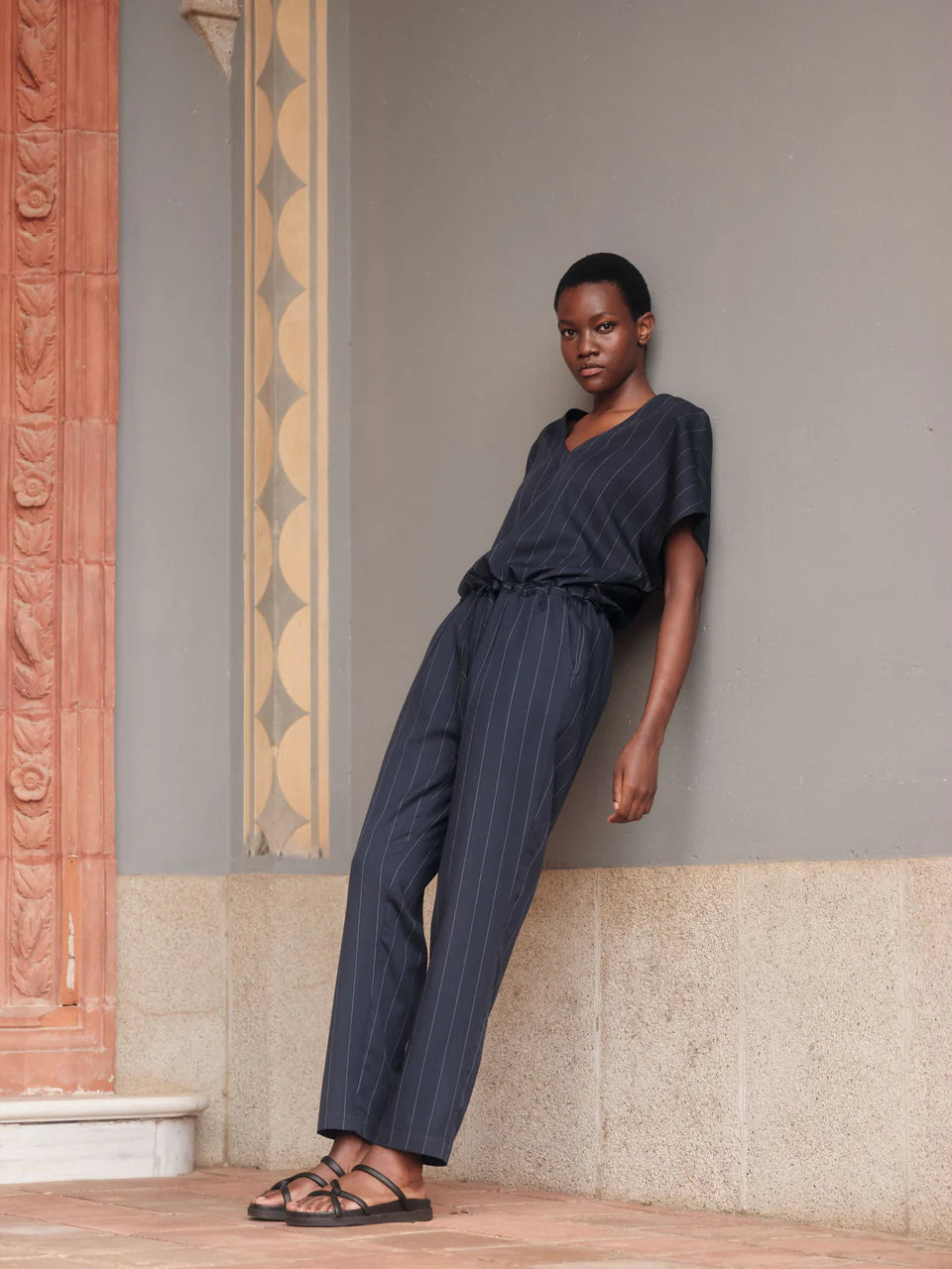 The soft, flowing fabric ensures a comfortable fit, while the V-neck and drawstring waist accentuate a feminine silhouette. The slightly tapered leg completes the look and makes it a versatile favourite.