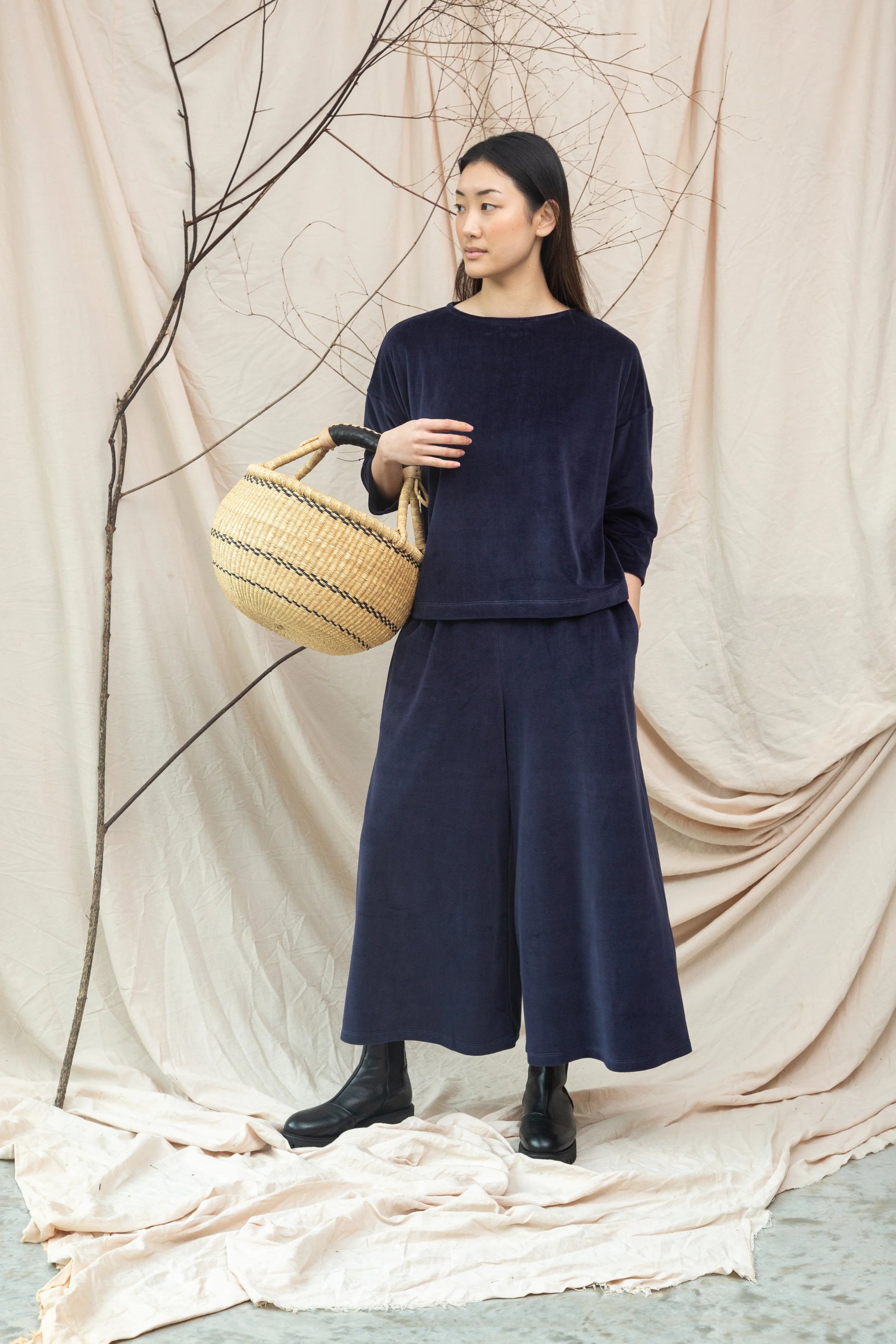 Odette Organic Cotton Velour Trousers Night Sky Navy