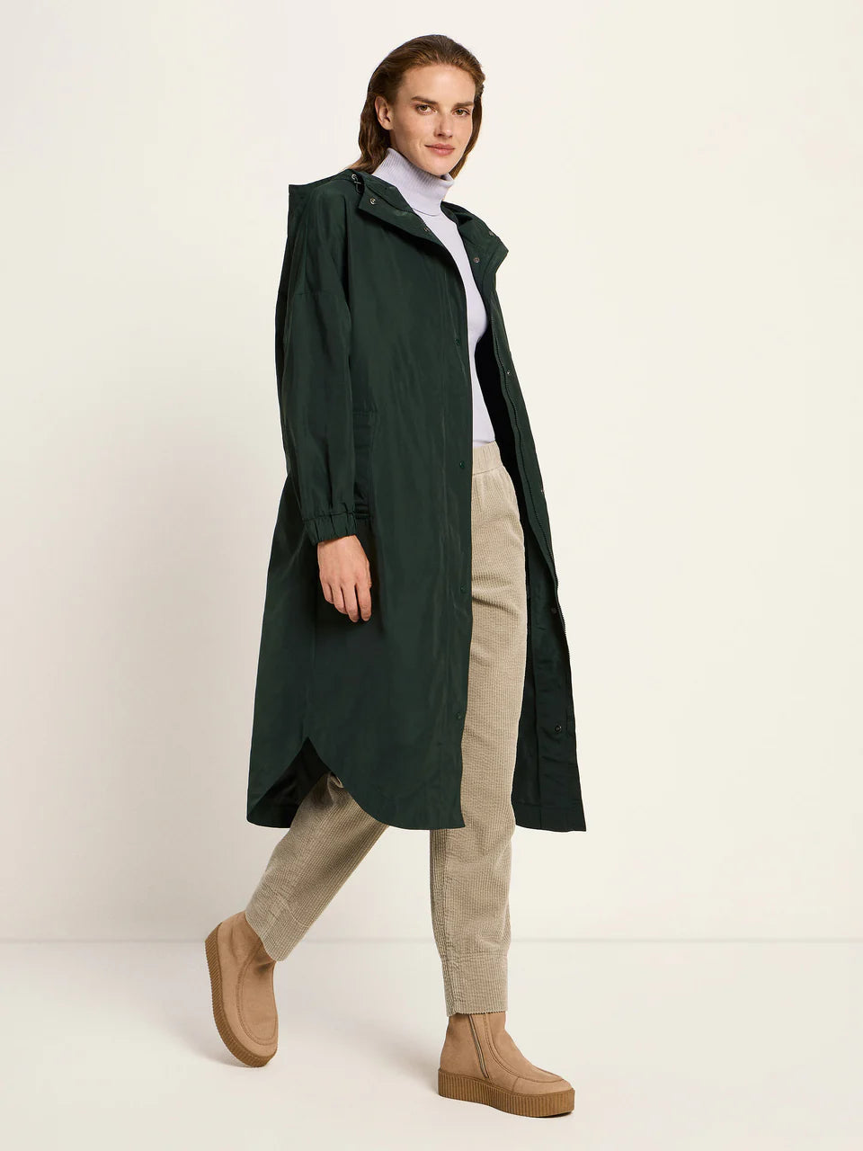 Weatherproof and stylish – this coated coat made of recycled polyester combines functionality with modern design. The water-repellent finish reliably protects against wind and rain, while the casual, long silhouette and hood create an urban look. Practical details such as a snap closure, side pockets, and an adjustable hood round off the comfortable fit. A sustainable essential for those who don't want to sacrifice style even on changeable days.