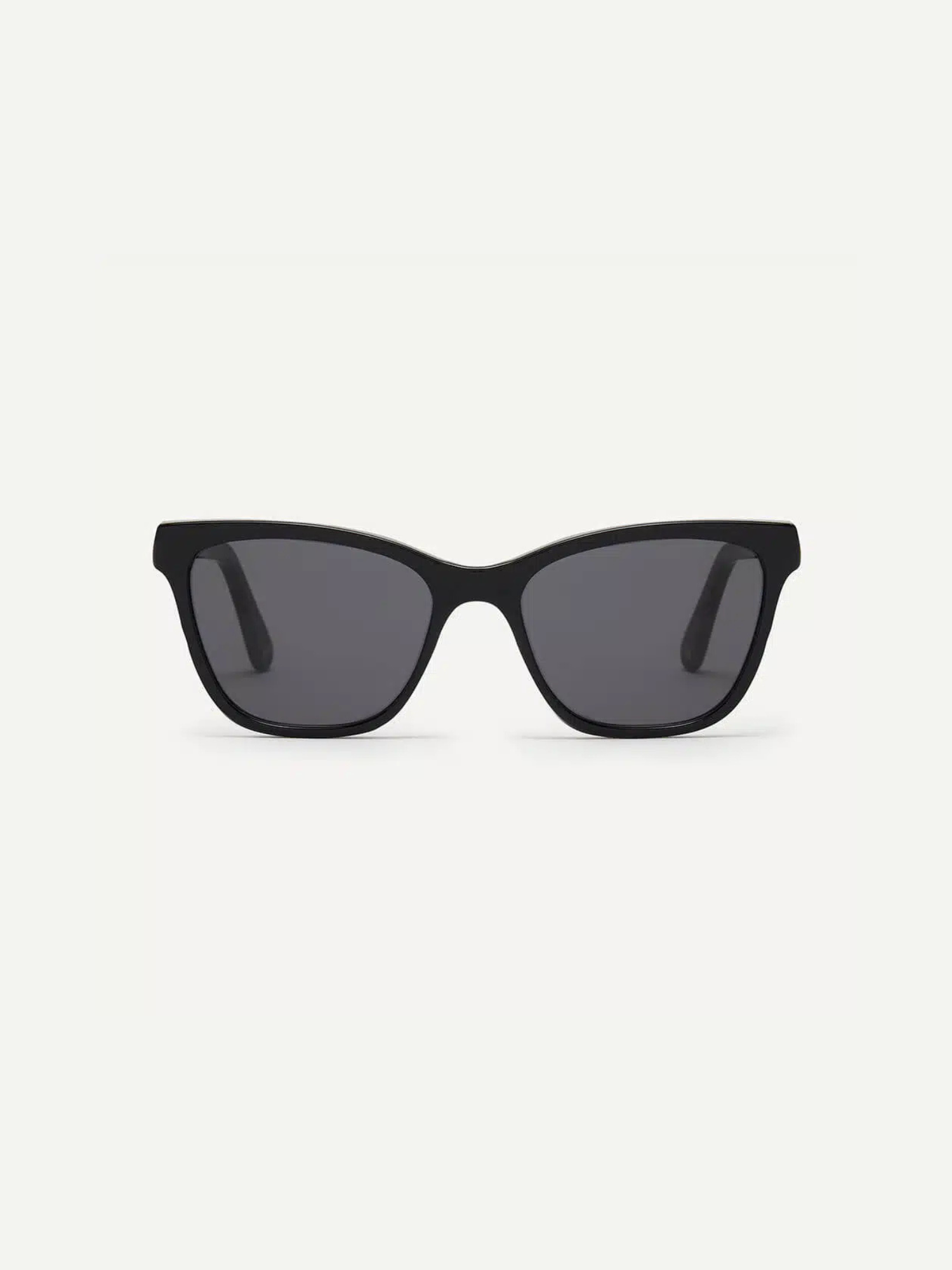 Pala's Anansa frame is an ode to the inherent coolness of ‘60s starlets. This versatile black bio-acetate means you don’t need to worry about matching your sunglasses with your outfit – they’ll go with anything. Handmade and beautifully finished in recycled black acetate.