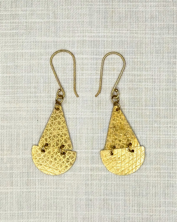 Petal Drop Cross-Hatch Earrings Brass