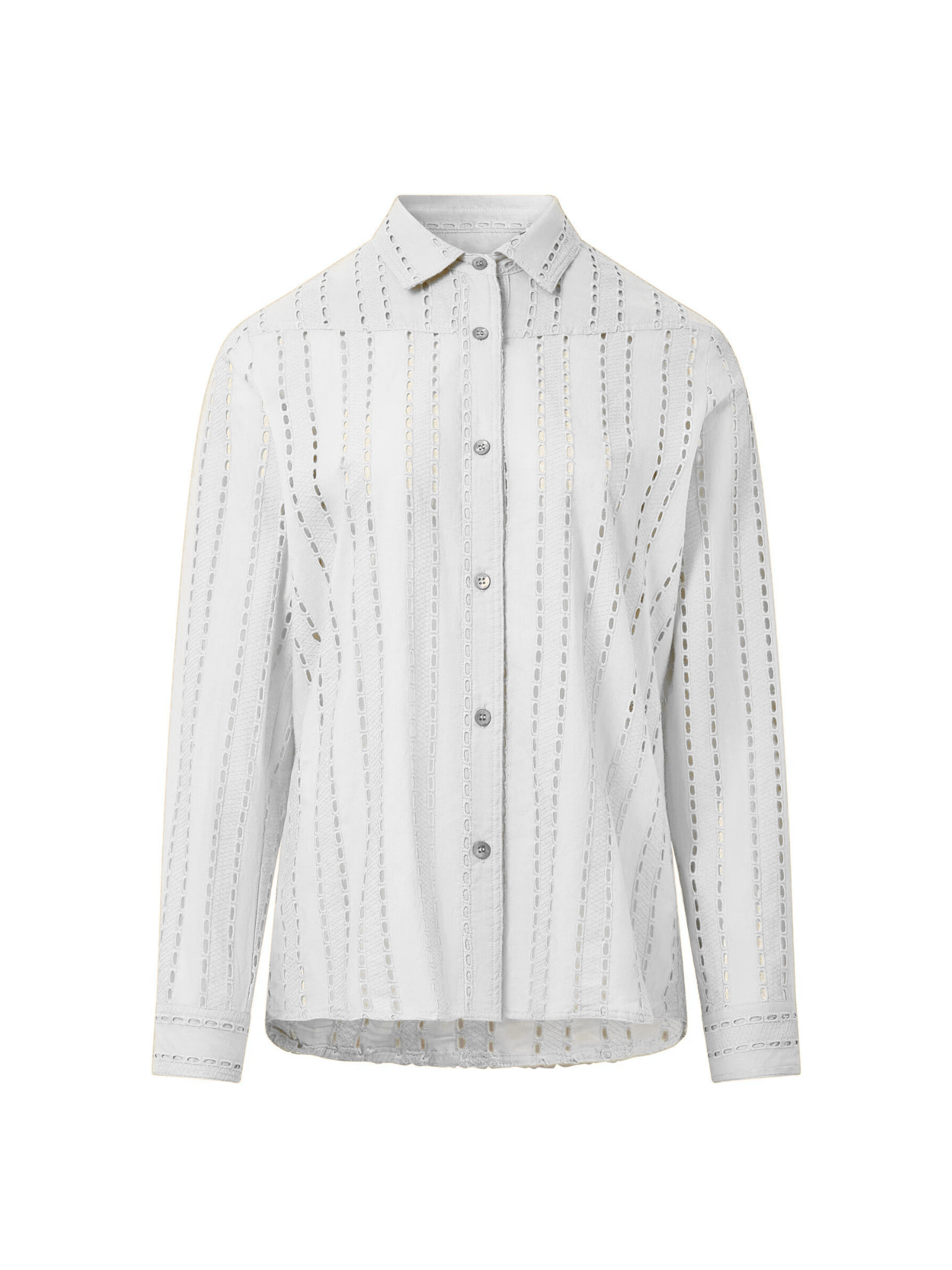 Bring out the broderie! Our organic cotton RIO Shirt with corozo buttons is a must for your new season capsule wardrobe.