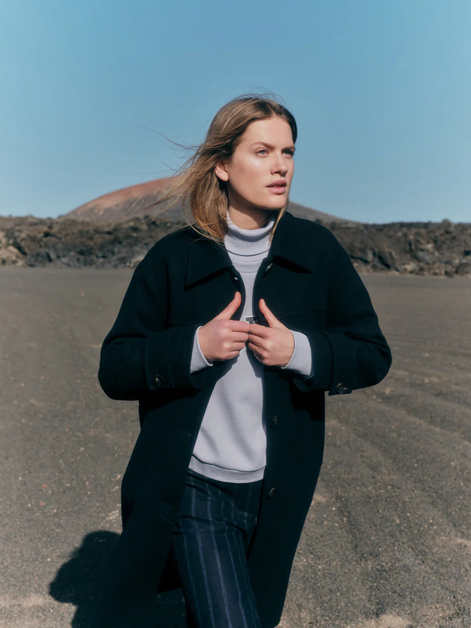 A timeless classic with a modern twist: This clean-cut coat impresses with its clean lines, full-length button placket, and pointed lapel collar. The high-quality virgin wool ensures warmth, durability, and a pleasant feel. With a casual oversized fit, straight cut, side pockets, and button detail at the cuffs, it's versatile and easy to combine—from a business look to a relaxed everyday style.
