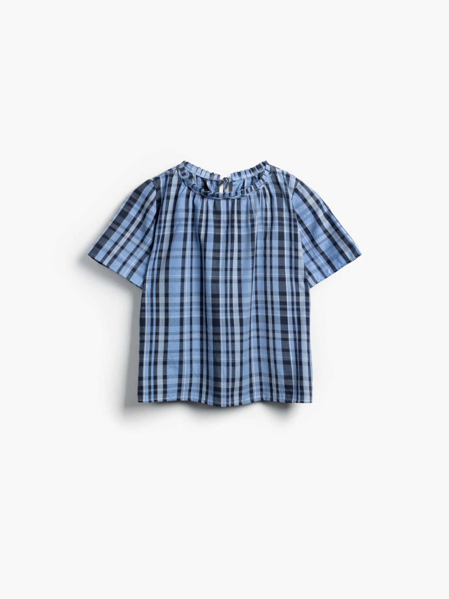 Shayla Reversible Frill Neck Blue Check